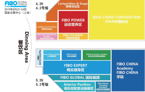 FIBO CHINA 2019年展馆布局全新规划,这场集贸易、教育、体验为一体的健身展,是全球领航健身展FIBO德国的中国及亚洲地区专业展会,共分为三大展区:商业健身区、时尚体验区、运动营养区。
